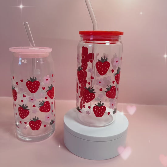 Strawberry Bliss Retro Glass C 16oz, girly Cup, Retro girl Drink ware, Coffee Lovers, Ices beverages, Smothies cup,